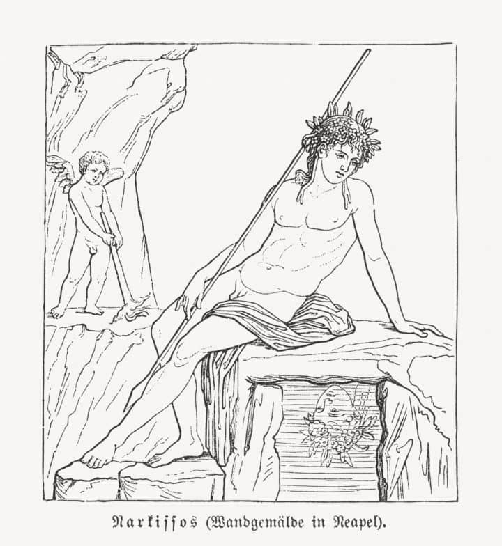 Narcissist was a young boy of unrivaled beauty, in Greece or anywhere else. One day, Narcissus went hunting in the woods with friends, but he became separated from them. This is when Echo spotted him and fell deeply, madly in love. Obviously, she was unable to tell him how she felt.