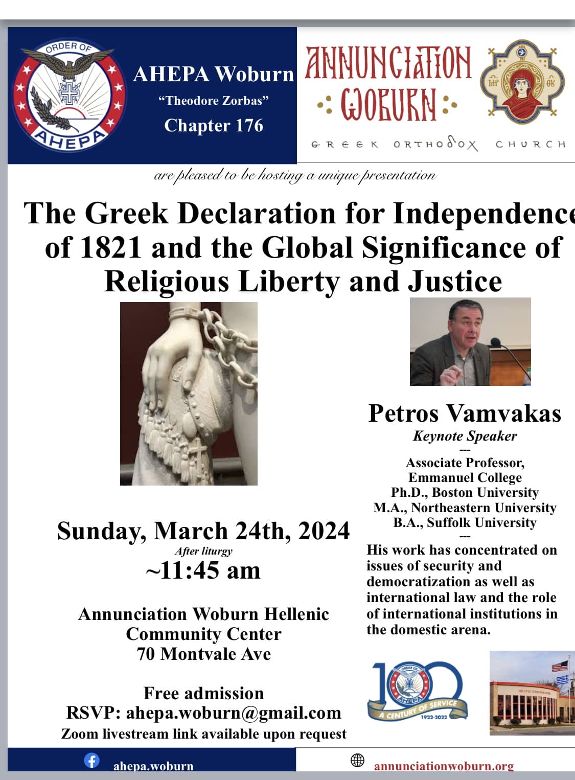 AHEPA Lecture by Petros Vamvakas in Woburn MA
