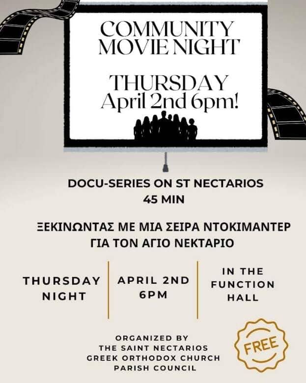 Movie Night at St. Nectarios Greek Church Roslindale MA